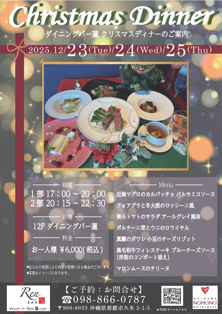 今年のクリスマスはぜひ「ダイニングバー蓮」で那覇の夜景を楽しみながらシェフ特製のディナーをご堪能ください♪